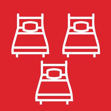 O quarto triplo é a nossa solução mais econômica, mobiliada com 3 camas confortáveis. O quarto, mesmo sendo compartilhado, mantém todo o conforto do banheiro privativo dotado com chuveiro e conexão Wi-Fi.